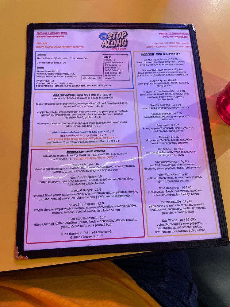 The StopAlong is a trendy spot in Chicago offering a diverse menu of pizza, burgers, and bars. This hipster and casual joint is suitable for families and friends, with options for vegans and vegetarians. The outdoor seating is heated and covered, making it a great choice year-round. The menu boasts flavorful dishes like the smash burgers, chicken wings, and build-your-own pizzas. Customers rave about the friendly staff, fast service, and nostalgic 80s vibe. The atmosphere is described as cool, retro, and inviting, with TVs for sports fans. Specials like the garlic knots and cheesy garlic bread are must-tries. Overall, The StopAlong is a top choice for delicious food, chill vibes, and great service.